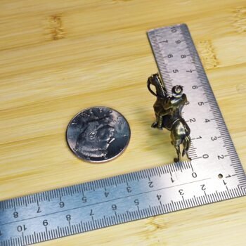 Bring the adventurous spirit of the Wild West into your space with this finely crafted brass cowboy riding a horse figurine. Capturing the dynamic motion of a cowboy in action, complete with hat, reins, and a lifelike horse stance, this miniature statue is a perfect representation of Western culture. The polished brass finish adds a classic, nostalgic touch, making it an excellent addition to any setting.