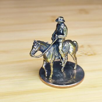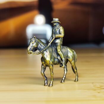 Ideal for use as a centerpiece on a desk, bookshelf, or coffee table, this figurine radiates the thrill of Western exploration. Incorporate it into miniature landscapes, terrariums, or aquascapes for a unique display. A great gift for fans of cowboy movies, history enthusiasts, or collectors, this brass figurine blends art and adventure seamlessly.
