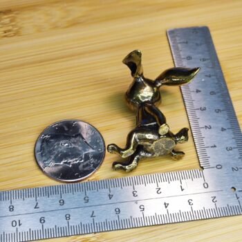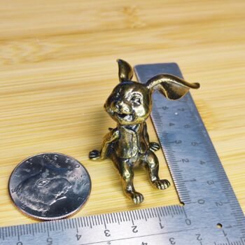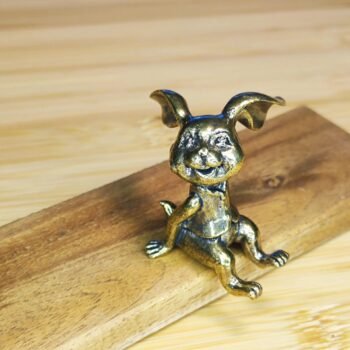 A charming brass rabbit figurine with a playful pose, seated with stretched legs and perked-up ears, exuding a joyful and whimsical presence. Crafted from polished brass, its golden sheen adds an elegant touch to any space. Whether displayed on a bookshelf, desk, or as part of a collectible arrangement, this delightful bunny brings warmth and personality to your decor. A perfect gift for animal lovers, zodiac enthusiasts, or anyone who enjoys unique and timeless ornaments.