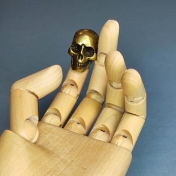 Product Description: This brass skull figurine showcases meticulous craftsmanship with its intricate detailing and antique finish. Measuring 2.4 cm in height, 3.2 cm in length, and 2.2 cm in width, this compact and sturdy sculpture weighs 49 grams. It’s perfect for collectors or as a unique desk or shelf decor piece, adding an edgy and artistic touch to your space.