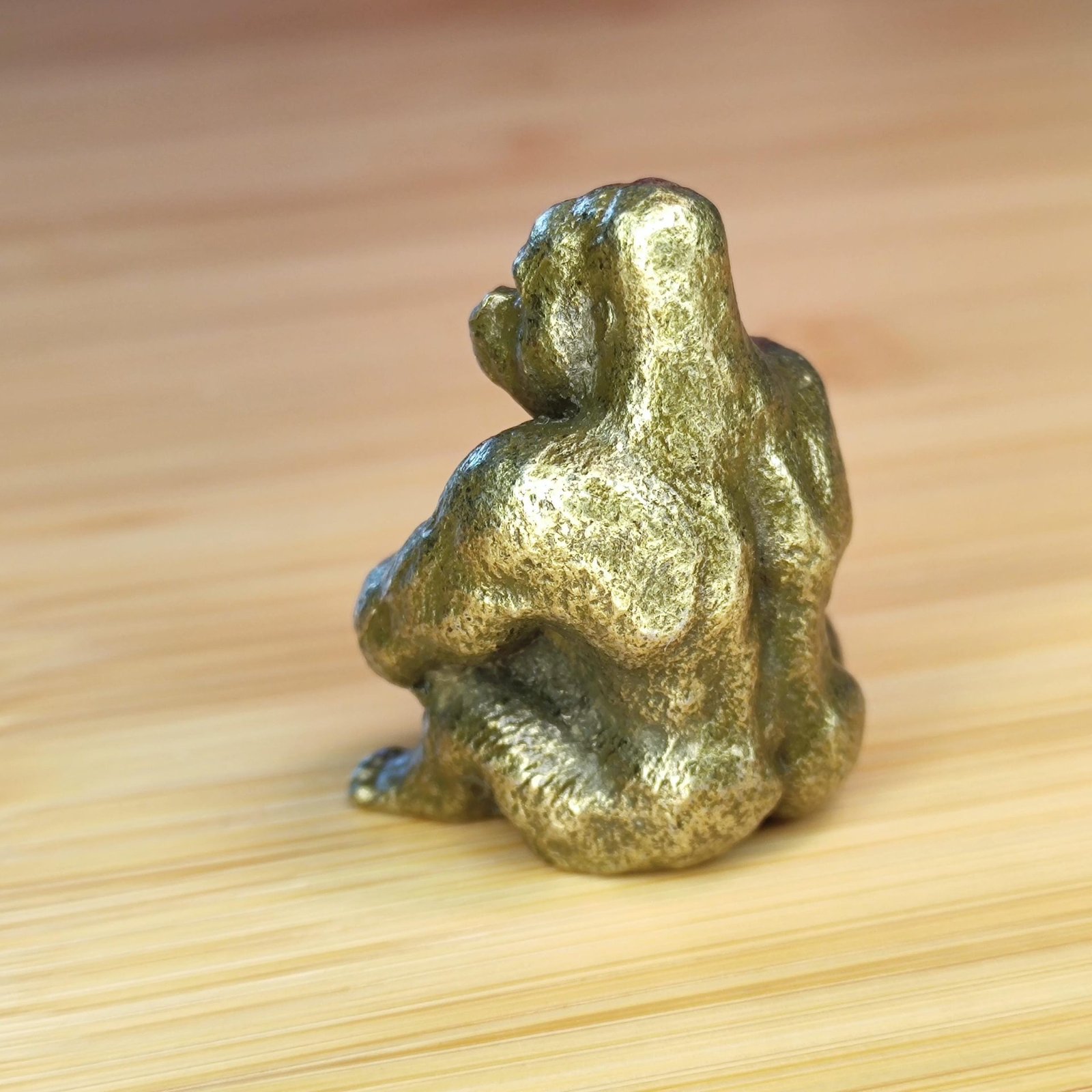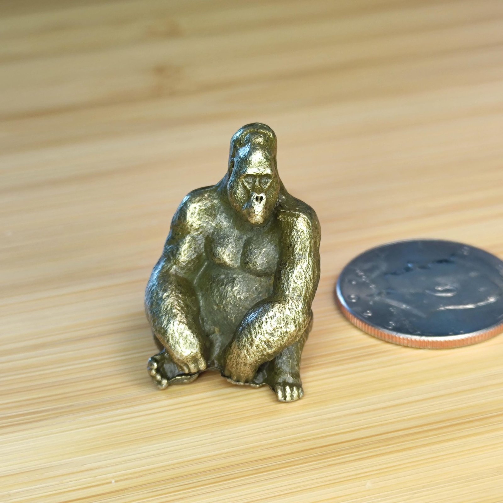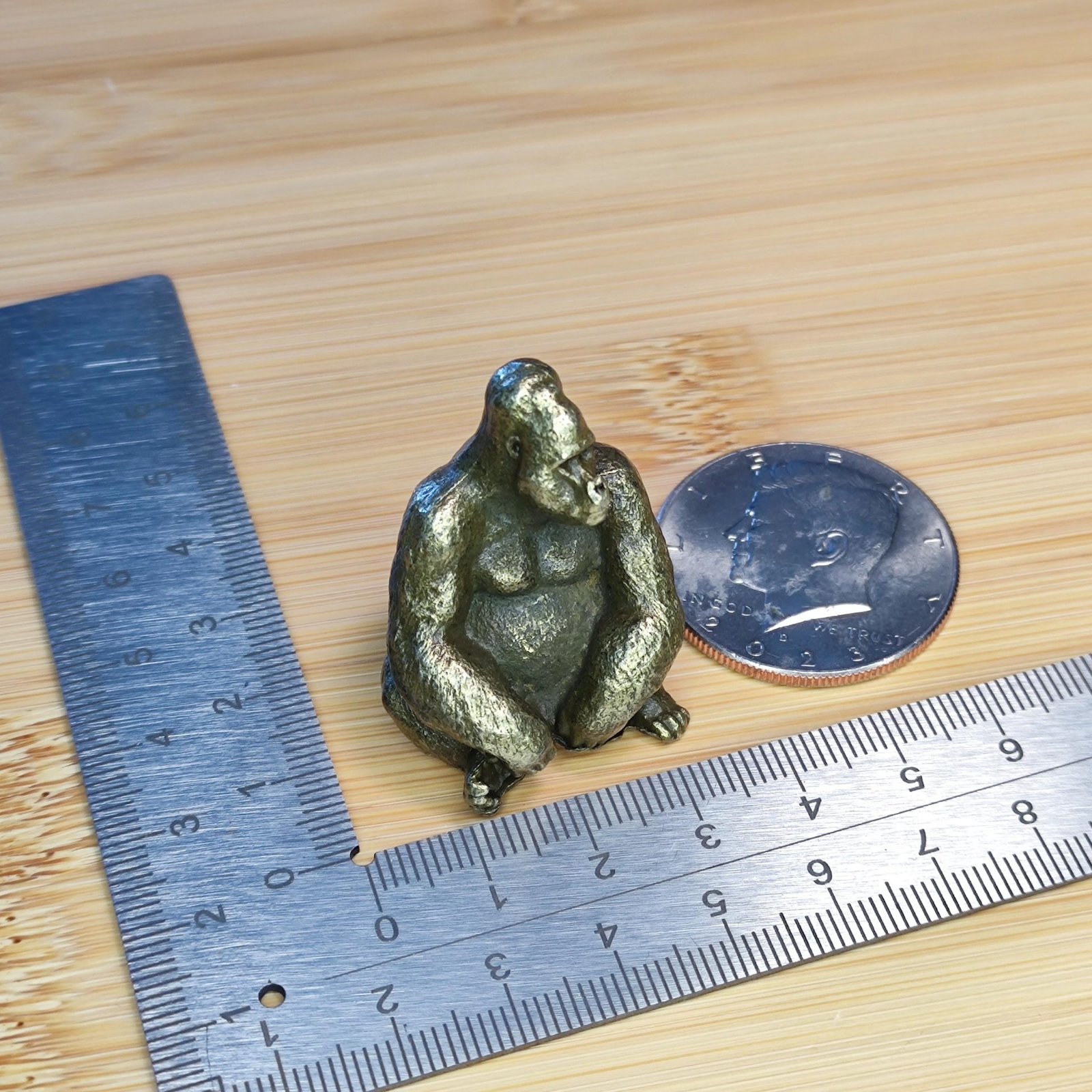 Discover the powerful charm of our handcrafted brass gorilla figurine. This meticulously detailed miniature captures the essence of a gorilla in a seated pose, with one arm resting on its knee, evoking a sense of calm and contemplation. Weighing 65 grams (2.29 ounces) and measuring 3.6×2.5×2.3 cm (36x25x23 mm, 1.42×0.98×0.91 inches), this unique piece is perfect for collectors, knick-knack enthusiasts, or anyone looking to add a touch of wilderness elegance to their decor.