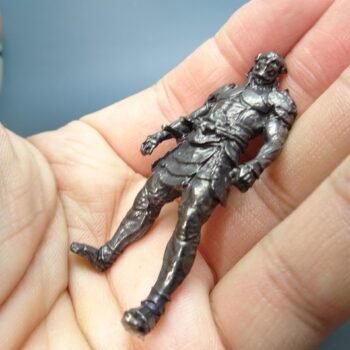 Description: This handcrafted brass figurine is a unique and detailed collectible. Crafted with precision, it stands against a hand for scale. The figurine measures 53 mm in height, 24 mm in length, and 13 mm in width, weighing just 30 grams. Ideal for collectors and enthusiasts of miniature figures, this detailed warrior in traditional armor makes a meaningful gift.