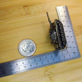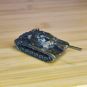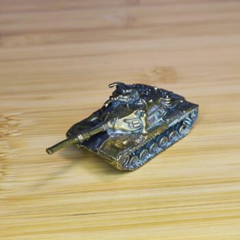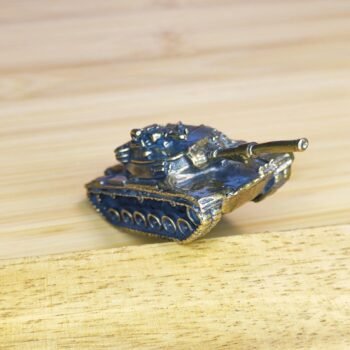 This solid brass tank figurine showcases a compact yet finely detailed representation of military craftsmanship. With its precisely sculpted turret, tracks, and barrel, this miniature tank captures the rugged aesthetic of armored vehicles, making it an ideal collector. item or bold desk accent. Constructed with solid brass, its polished finish and hefty feel emphasize durability and premium quality.