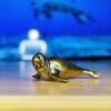 Unleash the power of legend with this intricately textured brass monster figurine. Featuring detailed spikes along its back, a long tail, and a commanding pose, this fierce creature exudes strength and mystery. Crafted from durable brass, its metallic sheen enhances its bold and striking design.