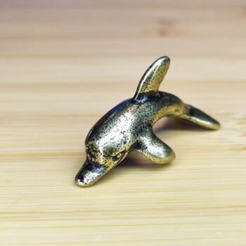 Dive into elegance with this intricately crafted brass dolphin figurine. Featuring a sleek and smooth design, this miniature captures the playful charm and grace of dolphins, making it a perfect addition to any marine-themed decor. The polished brass finish enhances its timeless beauty, offering versatility in its use.