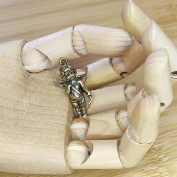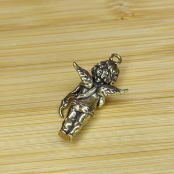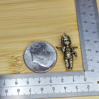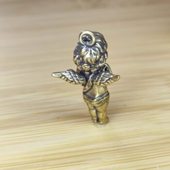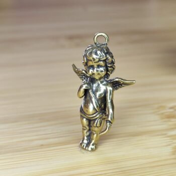 This brass cherub pendant is a delightful blend of elegance and charm. Featuring a winged angel standing gracefully with one hand raised to its lips, this collectible figurine exudes a sense of innocence and serenity. Perfect as a gift for loved ones, it’s versatile as a jewelry piece or a thoughtful ornament for any space. Whether displayed as a knick-knack or used as a unique pendant, this adorable charm is ideal for adding a touch of warmth to your collection.