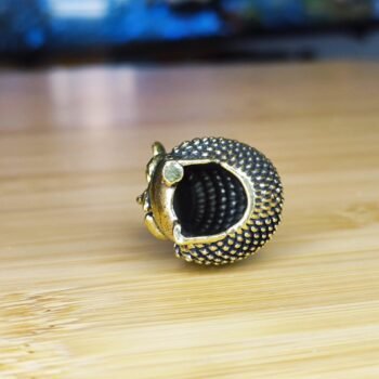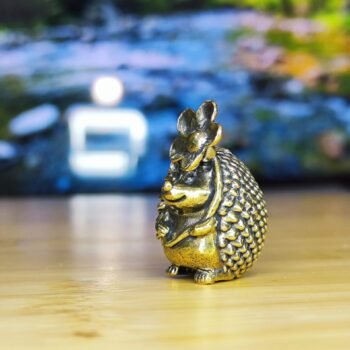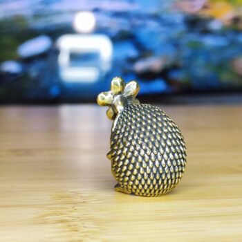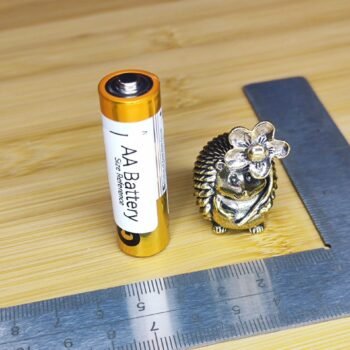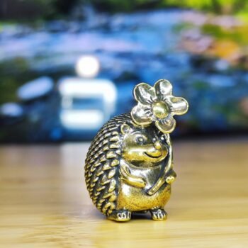 This adorable brass hedgehog figurine features a delicate flower resting on its head, adding a touch of whimsy and charm. With intricate textured details on its back, expressive tiny eyes, and a compact design, this miniature sculpture is both lightweight and hollow inside.